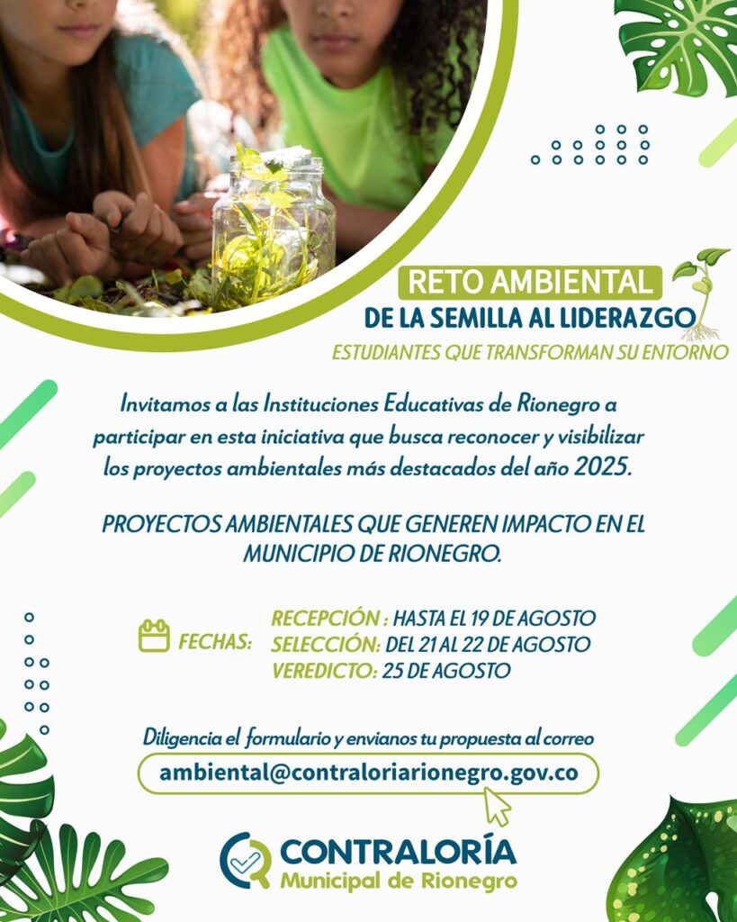 La Contraloría Municipal de Rionegro abre la Convocatoria al Reto Ambiental 2025 💚✨
