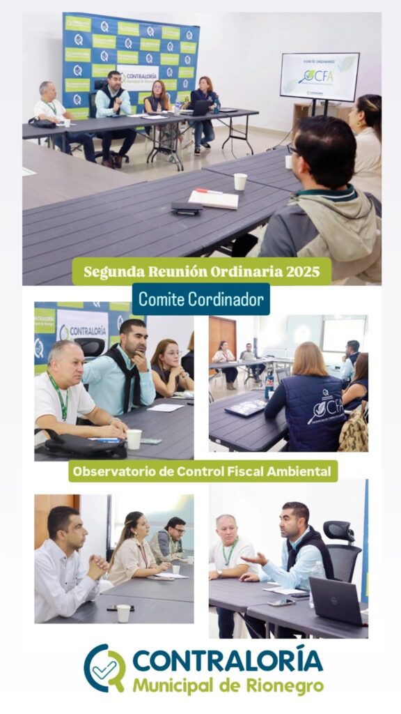 Culminamos con satisfacción la Segunda Reunión Ordinaria del Comité Coordinador del Observatorio de Control Fiscal Ambiental – OCFA 🌿, un espacio de seguimiento y articulación que integra a las instancias de control administrativas y ejecutivas, la administración municipal y sus entidades descentralizadas, la academia y la ciudadanía del municipio de Rionegro, para fortalecer la gestión fiscal ambiental en el territorio.
